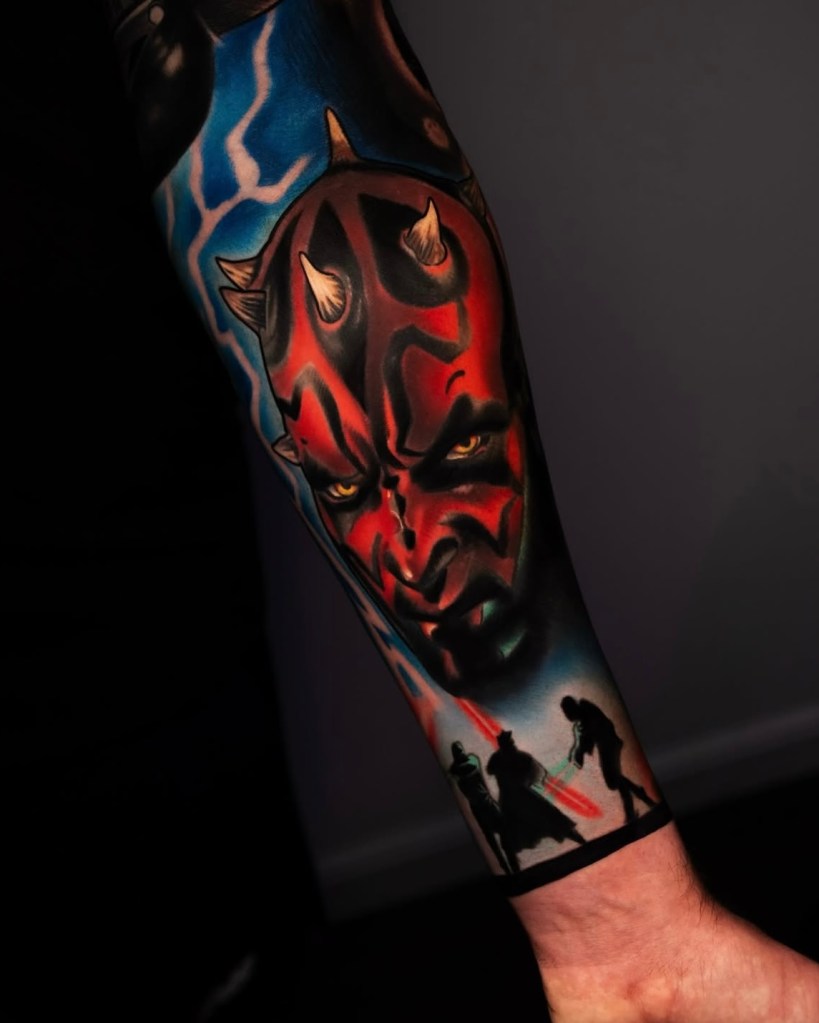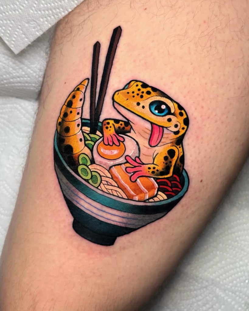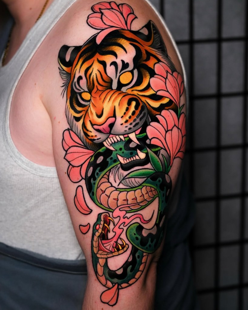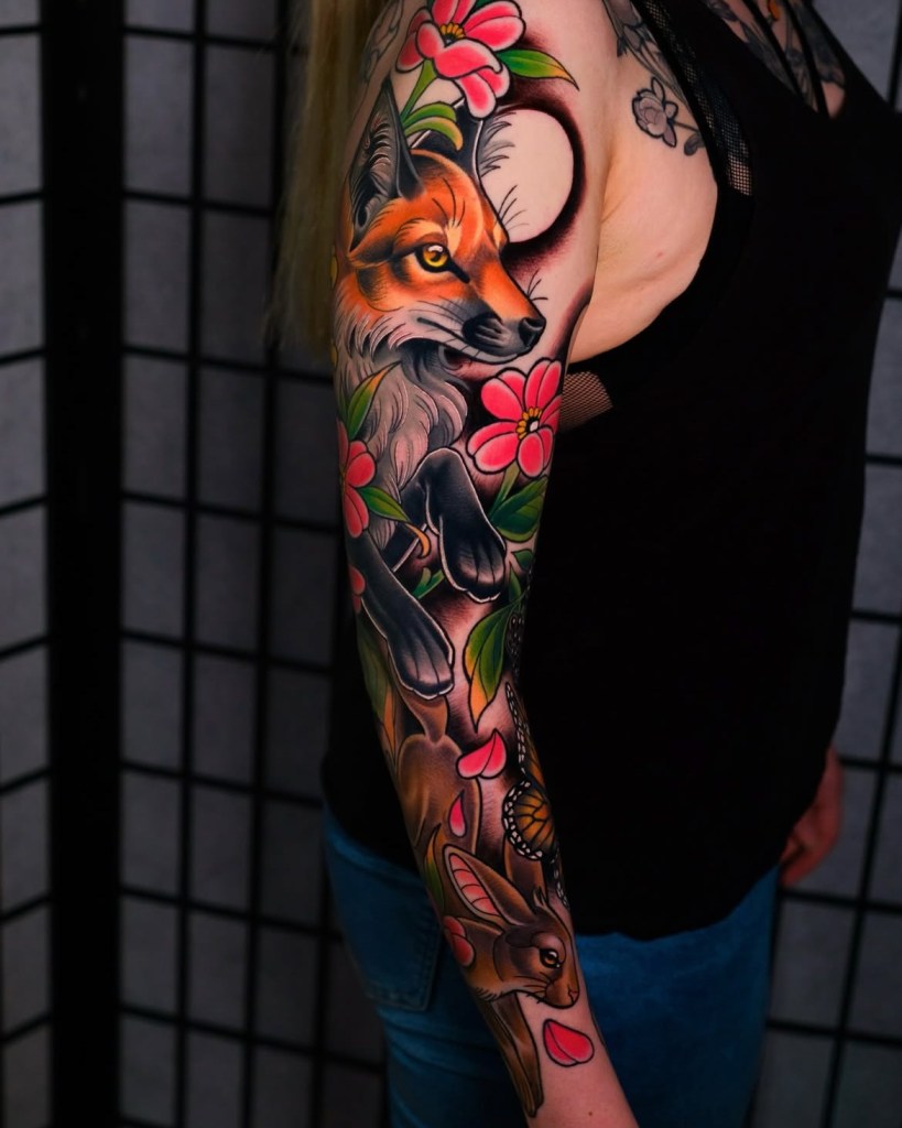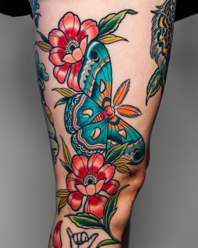 Chris specialises in vibrant neotraditional and illustrative tattoos, varying from bold concepts to softer palettes with ornamental details included. Well known for his pet portraits and Pokémon, Chris loves taking on a range of subjects from botanicals and animals, to elvish daggers, to pink and gold maces!