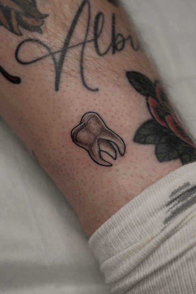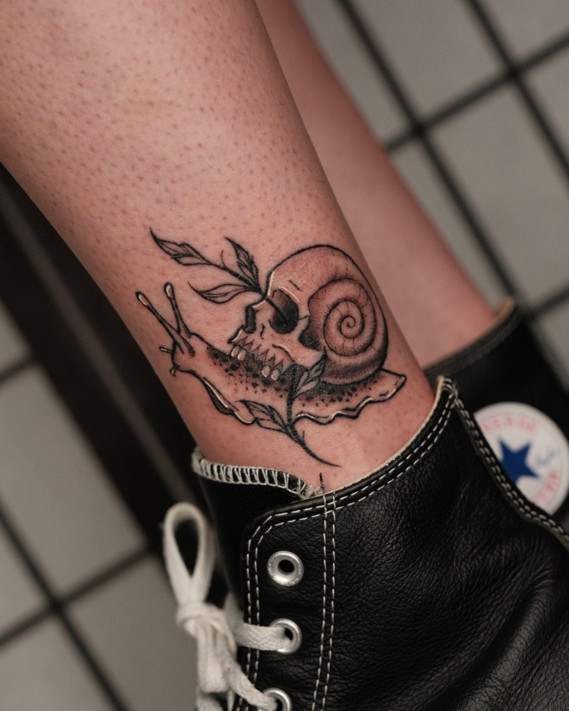 Dorigen is Chris Stockings’ tattoo apprentice and started her apprenticeship late August 2025. Dorigen loves tattooing a range of blackwork styles from delicate ornamental to bolder sticker style pieces. Currently tattooing arm and leg placements only, she has lots of flash designs available to book or takes on custom requests too. You can book in with Dorigen by direct message on her instagram or email.